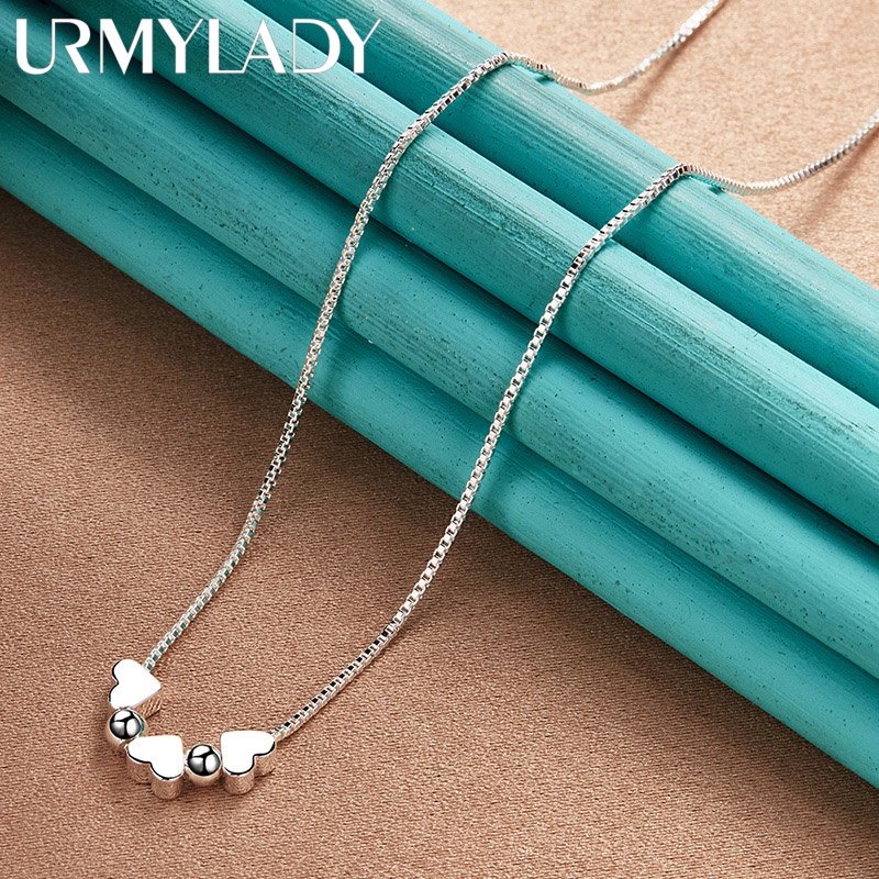 URMYLADY 925 Sterling Silver Heart Snake Chain Charm Necklace Para Mulheres Meninas Festa Presentes Noivado Moda Jóias