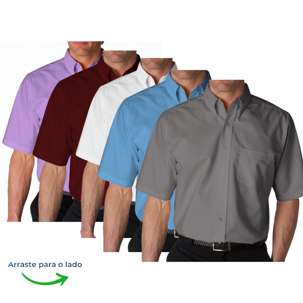 Kit 3 Camisa Social Masculina Manga Curta Com Bolso