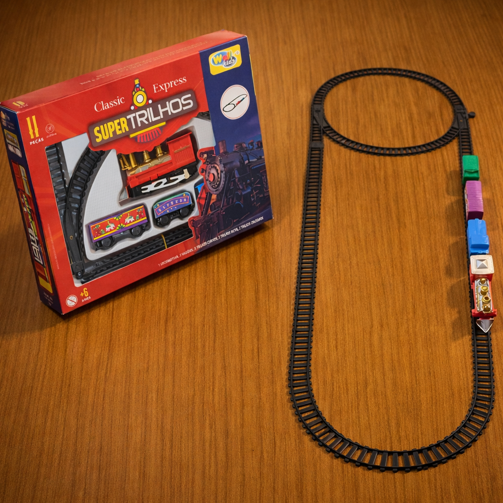 Pista Trem Clássico com Locomotiva e Trilhos Brinquedo infantil Trenzinho Ferrorama