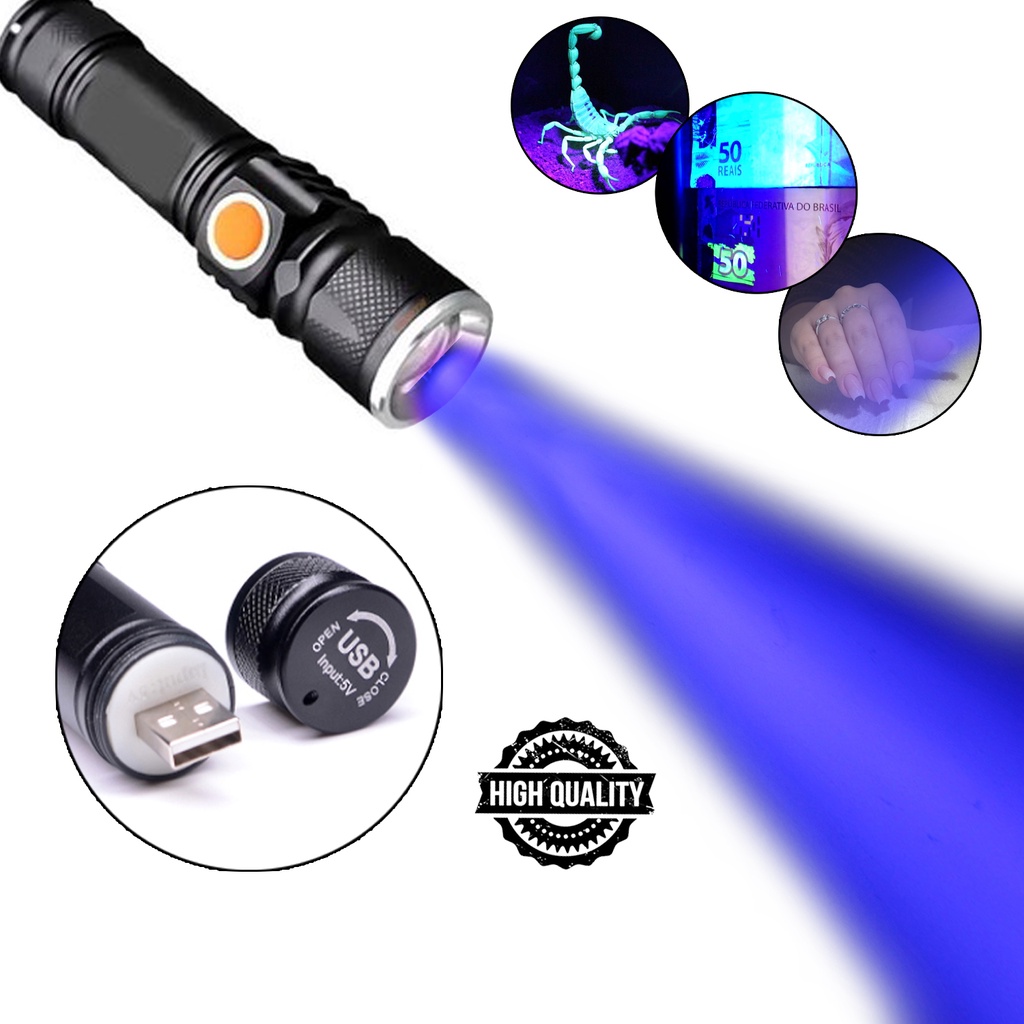 Lanterna Ultravioleta Usb Led Potente Luz Negra Uv Escorpião