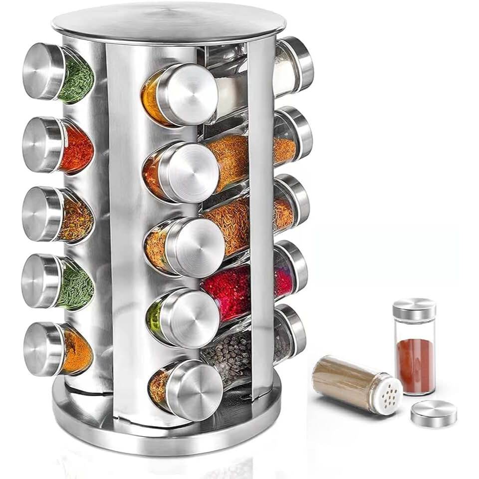 Porta Temperos Varios Tamanhos Codimento Cozinha Orgnaizada Inox Com Caneta Etiquetas Suporte Giratorio