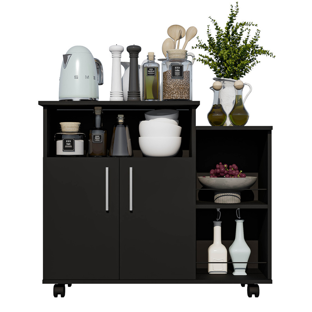 Armário Para Café Escritório Cozinha Organizador 2 Portas e Prateleiras Multiuso Com Rodinhas