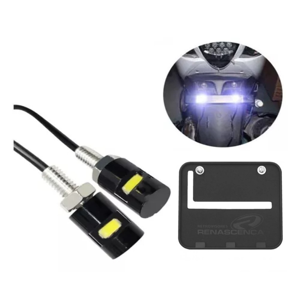 Suporte Placa Mercosul De Moto Universal Novo + Parafuso Com 1 Led Branco