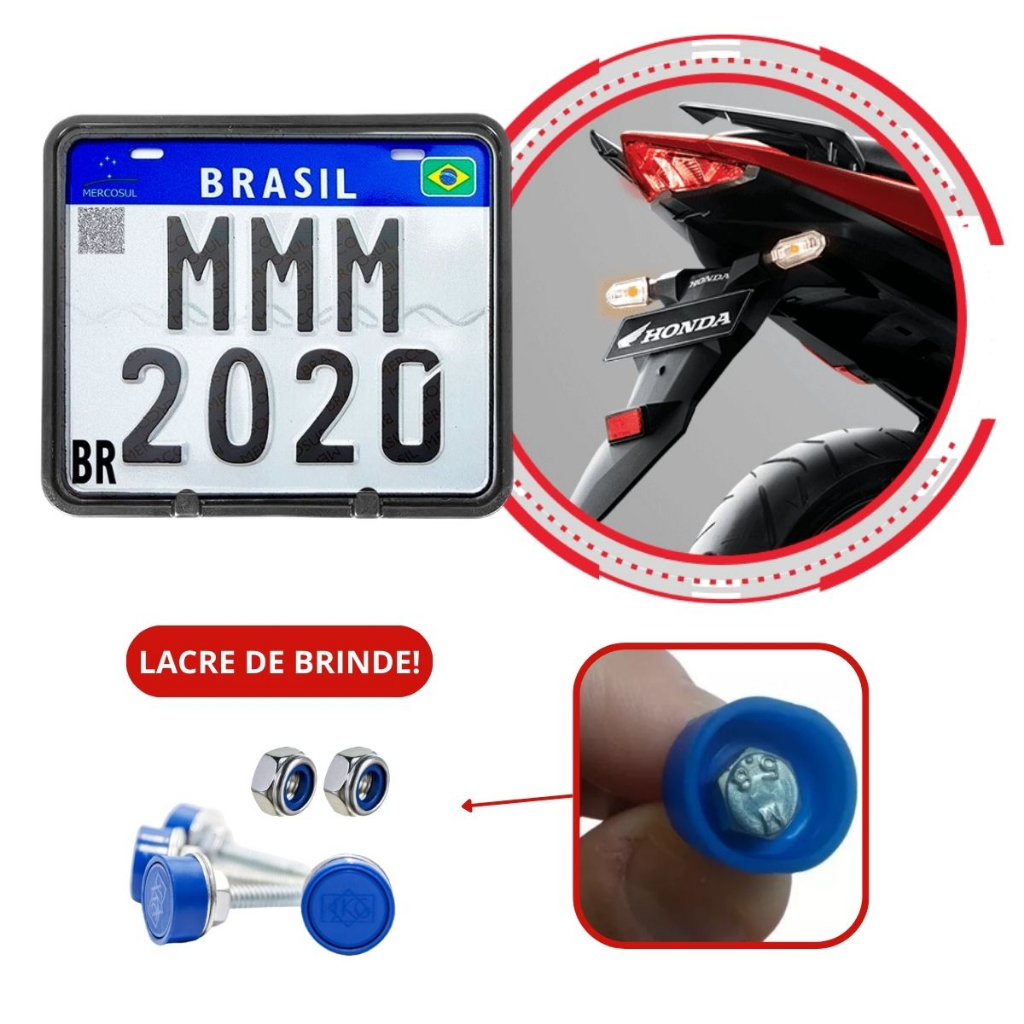 Suporte placa mercosul para moto com par de lacres antifurto e kit para instalação