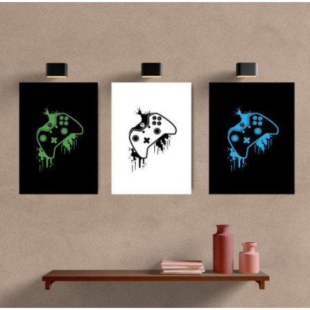GAME kit placa decorativa 20x30cm geek nerd azul verde e branco quarto gamer video game controle