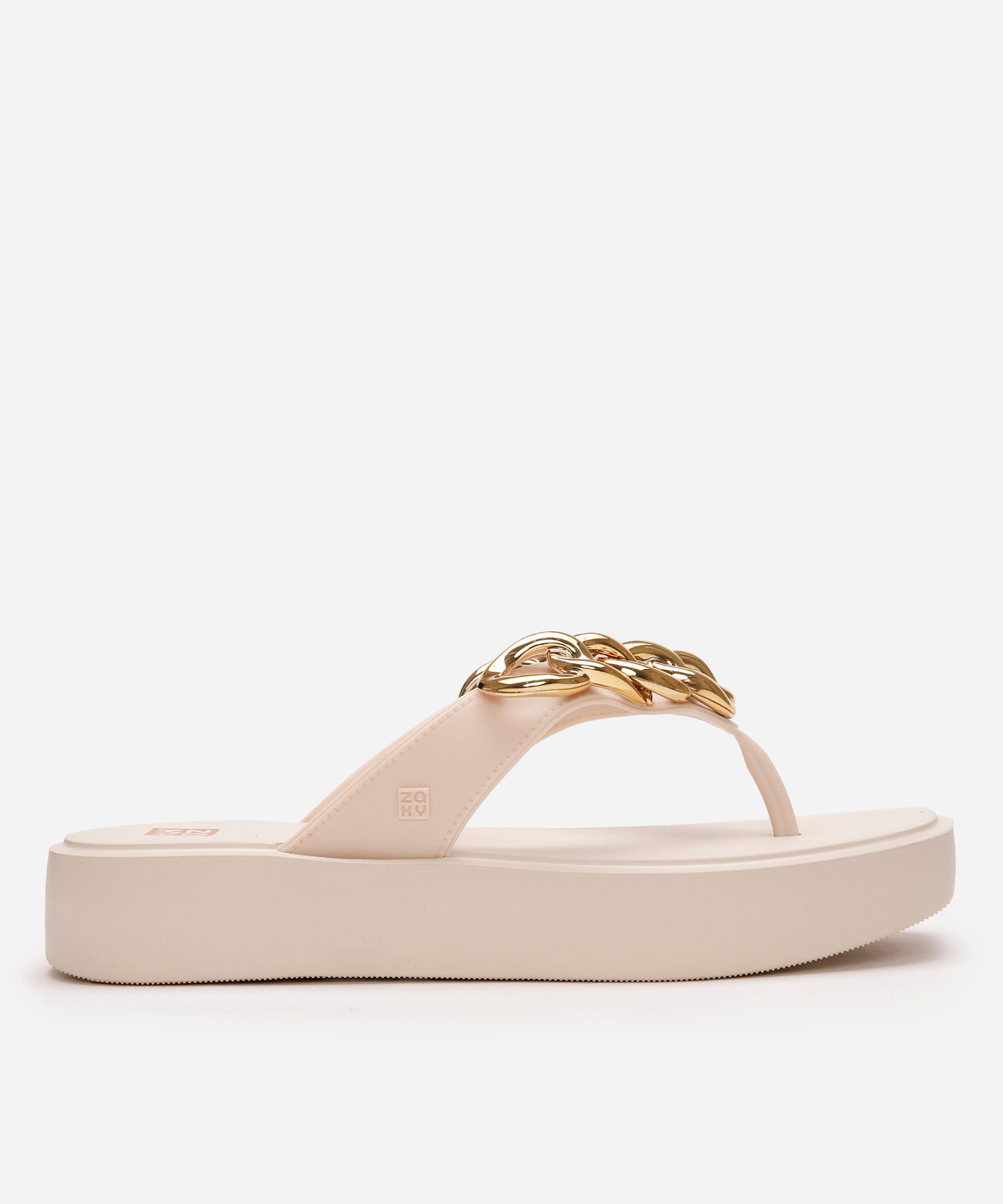 sandália flatform feminina zaxy com elos bege