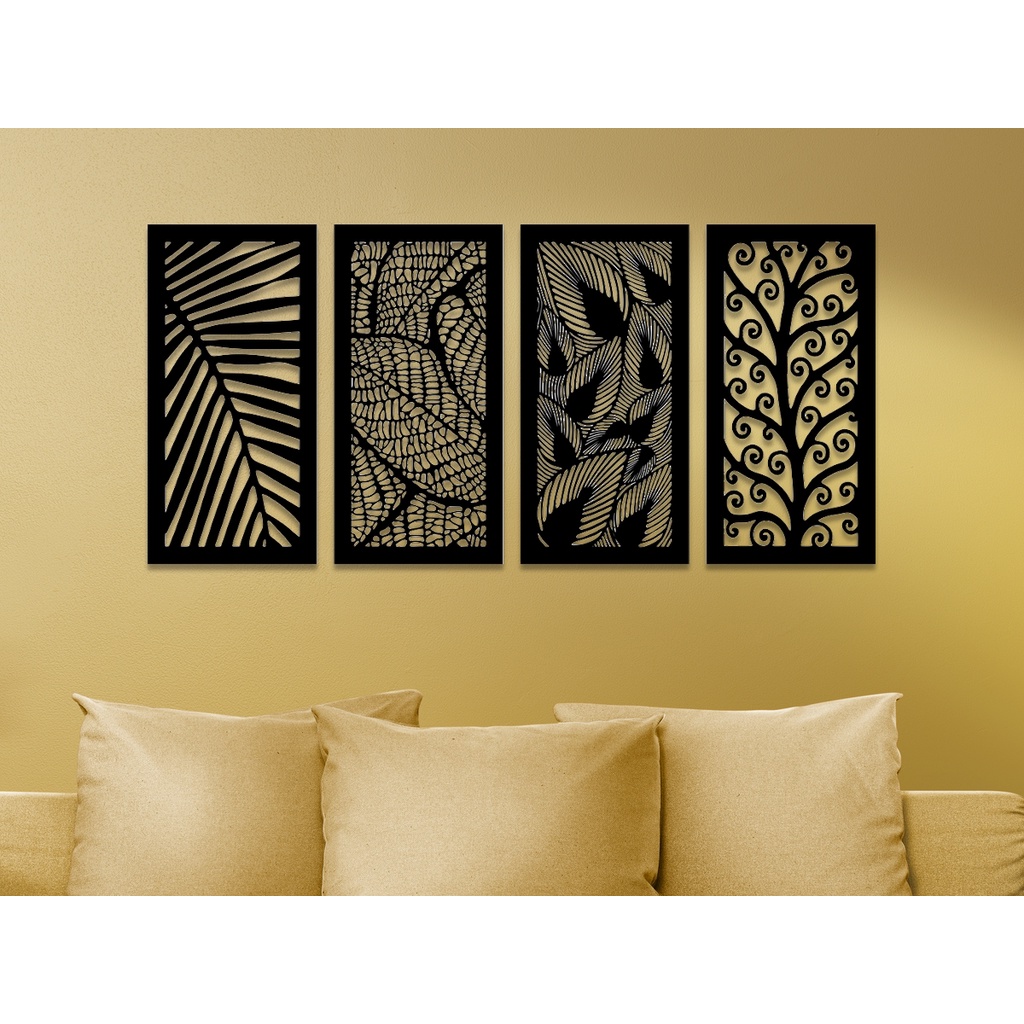 Conjunto 4 Quadro Folhas Vazado Decorativo Escultura Parede
