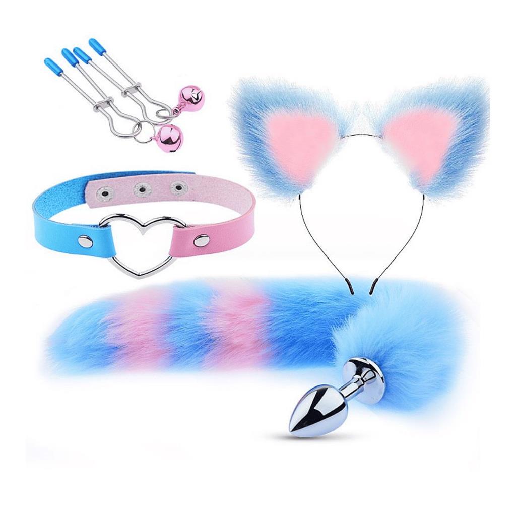 Plug Anal Cauda Kit Sex Shop Fantasia De Raposa Tiara Grampo Mamilo Azul Lilas