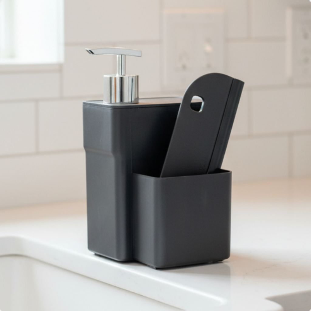 Dispenser Porta Detergente Suporte Bucha Com Dosador Para Pia Sabão Liquido Cozinha Bancada Arthi