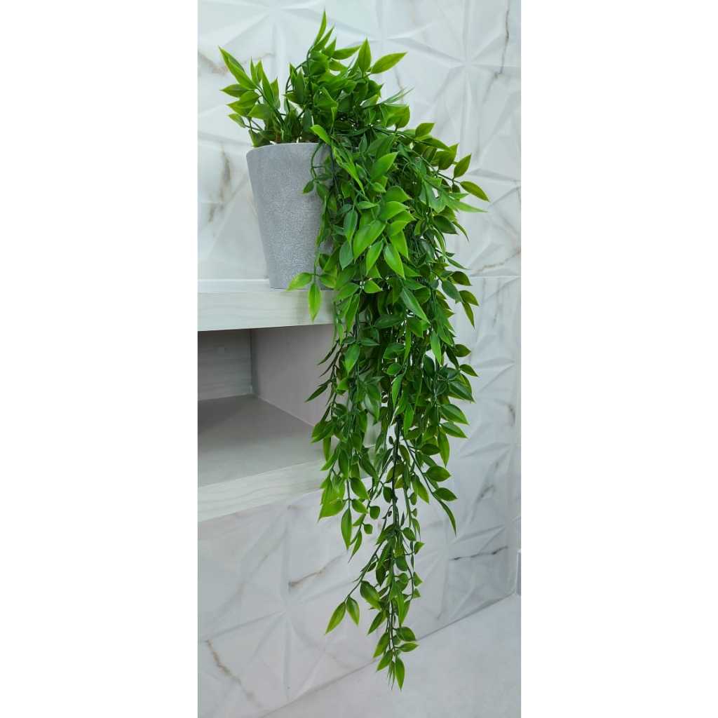 Arranjo Pendente Caída Folhagem Verde Artificial com Vaso Decoração para Ambientes