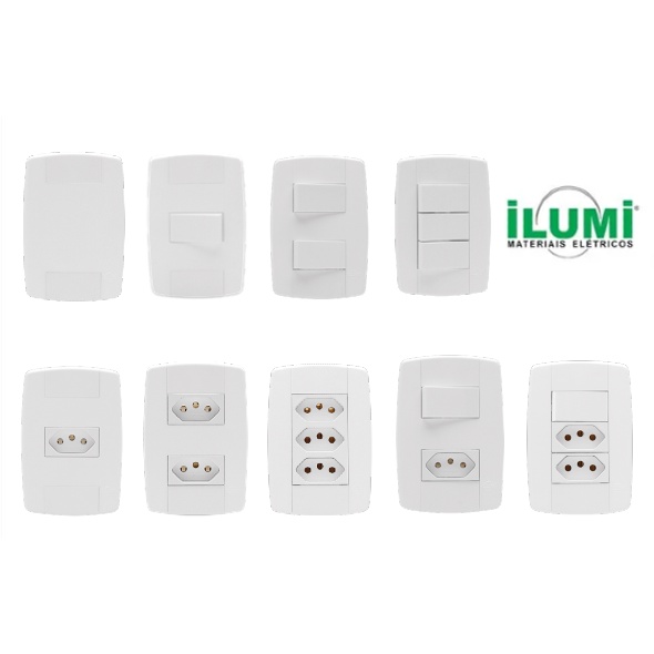 Tomada Interruptor Apagador Simples Paralelo Placa Cega Ilumi Slim 4x2 10A 20A Monobloco