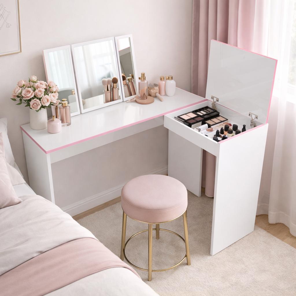 Escrivaninha Canto Penteadeira Camarim Com Espelho Mesa de Maquiagem Em L Star