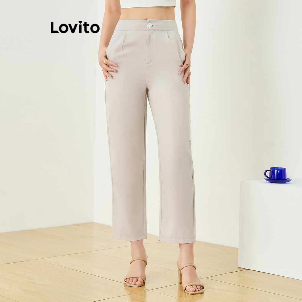 Lovito Calças Plissadas Lisas Casuais Para Mulheres LBL08079