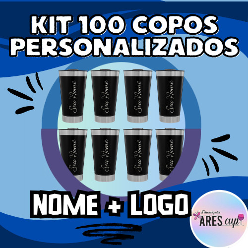 Kit 100 Copo térmico Inox LOGO ou NOME ou TIME personalizado com Tampa e Abridor