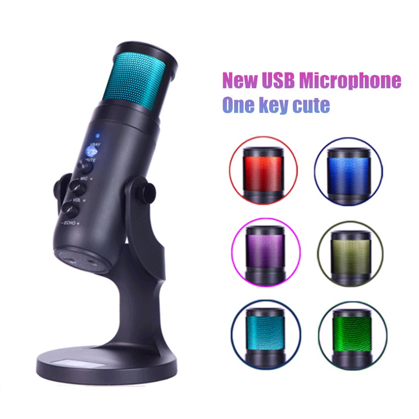 Microfone Para Jogos Computador Condensador USB Redução De Ruído Com Chave RGB Light/One Filtro Mute/Pop PC Portátil Gravação De Podcast Vlogging