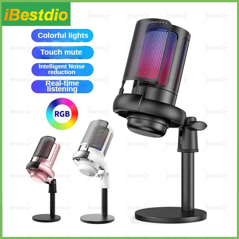 Microfone Condensador USB Com Podcast Gaming Desktop Leve RGB Para PC Computador Portátil