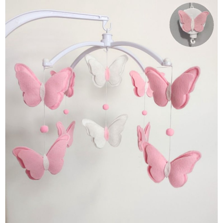 Móbile Músical e Giratório Borboleta Rosa e Branco