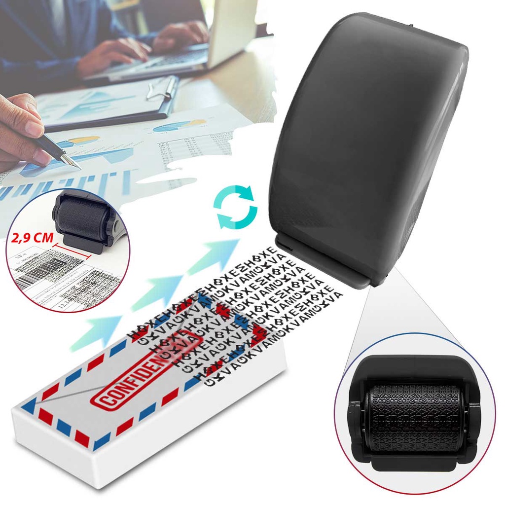Carimbo Segurança Protetor Privacidade Confidencial Proteção Rolo Rolete Esconde Apaga Dados Sigilosos Roller Rolinho