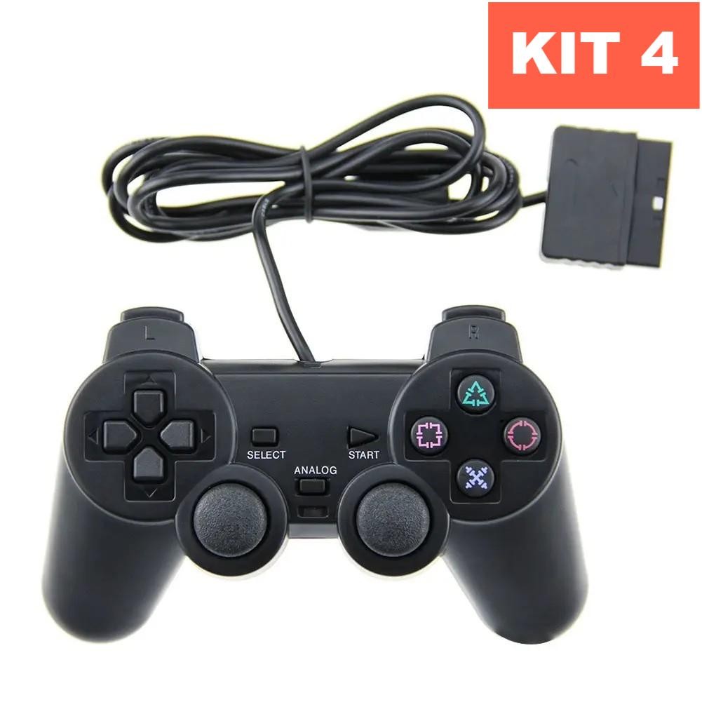 Kit 4 Controles PS2 Joystick Com Fio Ergonômico Plug And Play Cor Preto