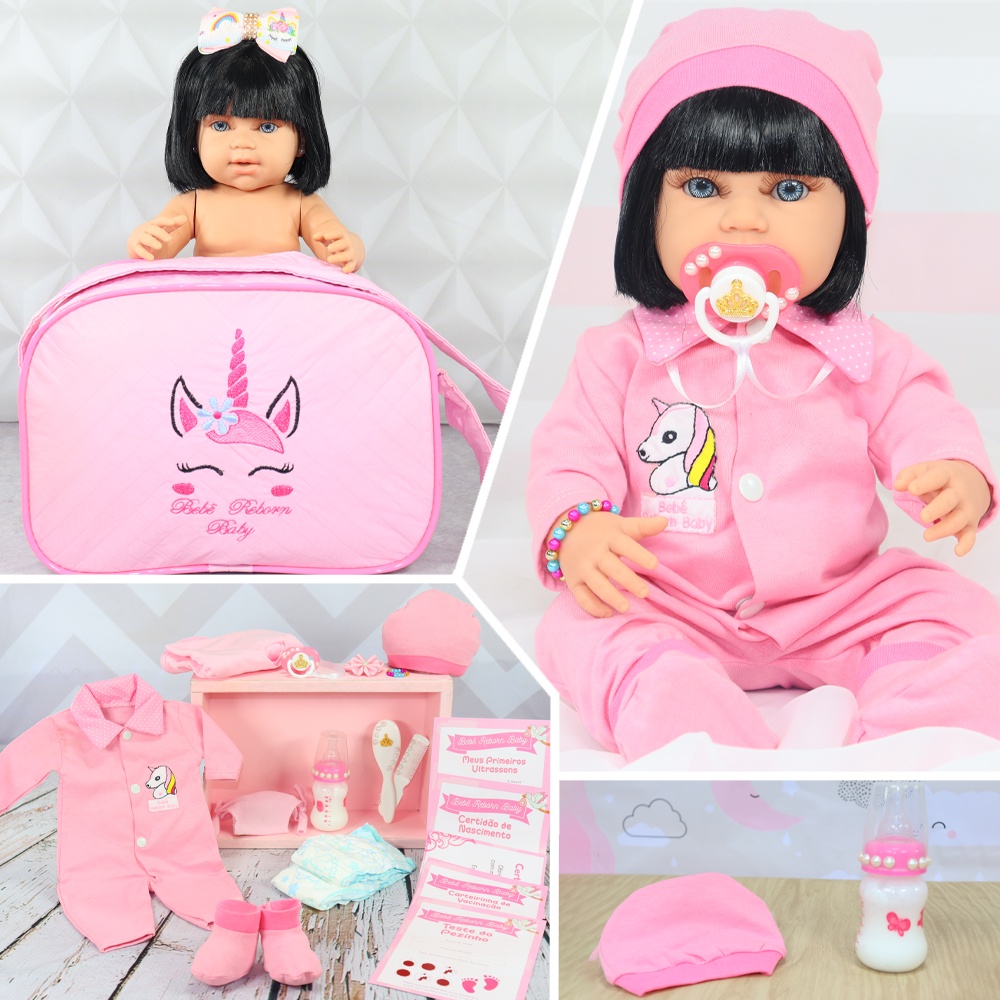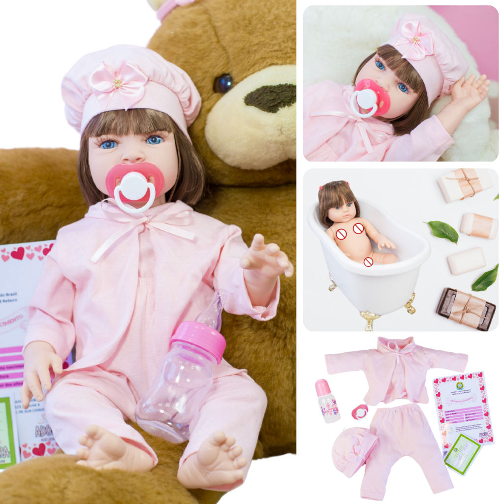 Boneca Bebê Reborn Silicone Realista Menina Com Kit e Roupinha Pode dar Banho