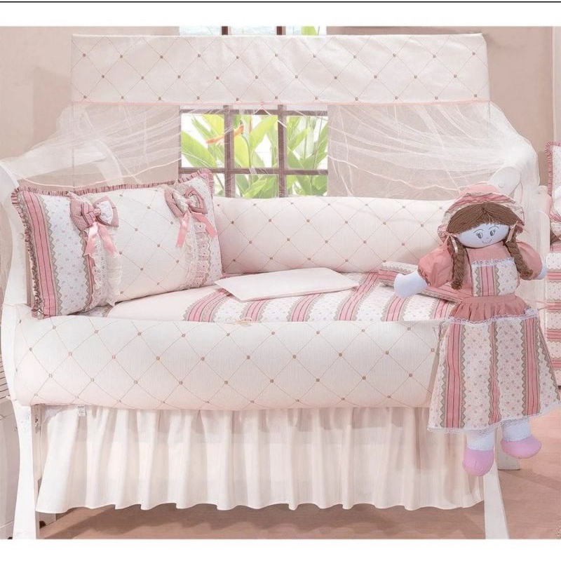 Kit Protetor De Berço 100% Algodão Mais Boneca Mais Saia.