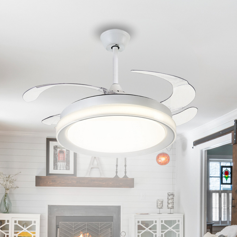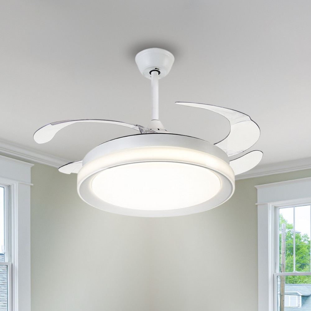 Ventilador De Teto Retrátil Air Basic Pás Branco Led 30w Bivolt Opus Controle Remoto Econômico Resfriamento Moderno