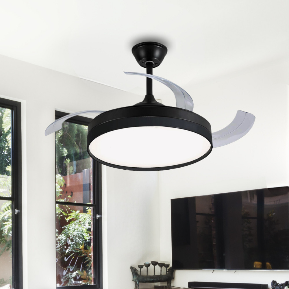 Ventilador De Teto Retrátil Air Basic Pás Preto Fosco Led 30w Bivolt Opus Controle Remoto Econômico Resfriamento Moderno