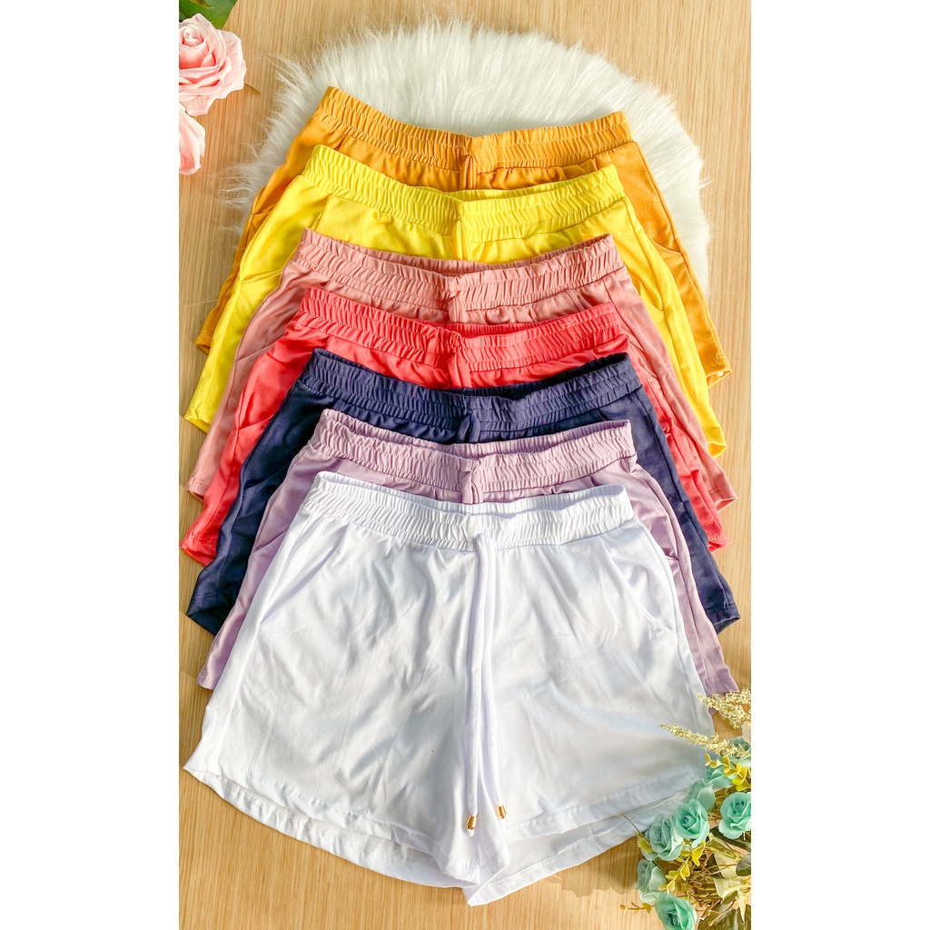 KIT 5 Shortinho Shorts Feminino Moda P ao GG Várias Cores Praia Piscina Short Tactel Verão