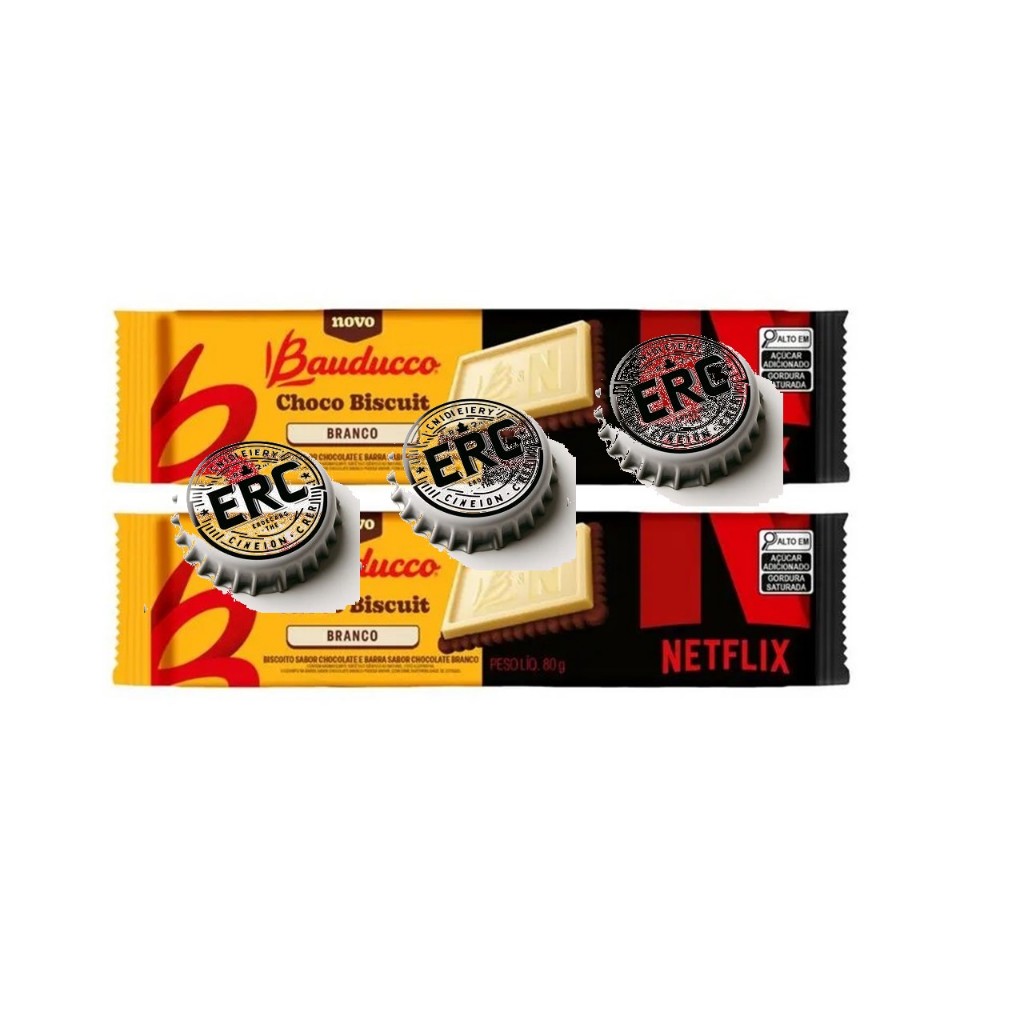 Kit 2 Bauducco Netflix Choco Biscuit Branco Topo Chocolate Branco e Biscoito Chocolate 80g Novidade