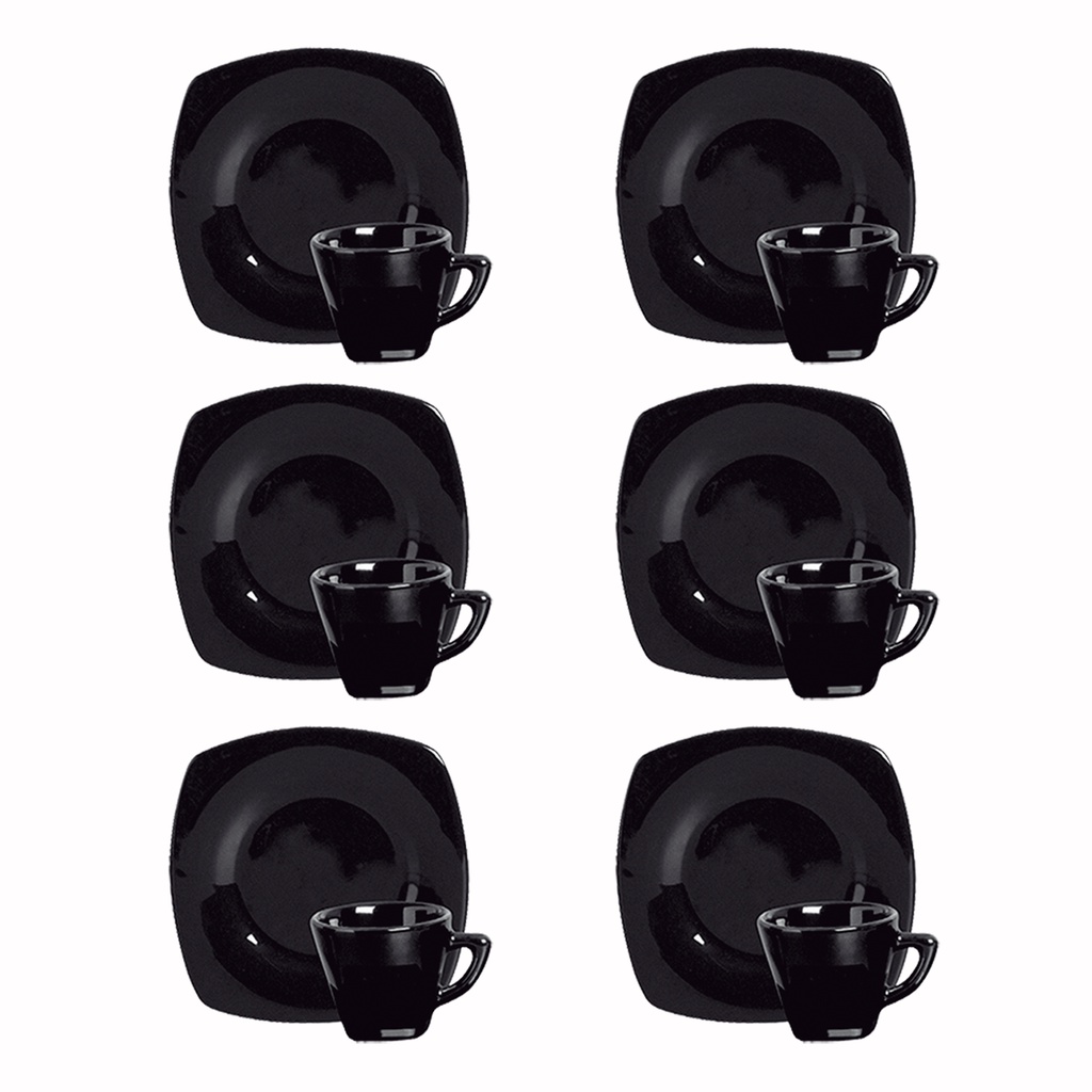 Jogo Xícara De Café Chá Com Pires Porcelana 12 Peças 90ML Preta