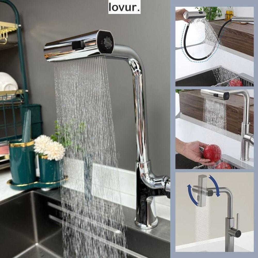 Torneira De Cozinha LOVUR Waterfall , ABS Multifuncional À Prova De Respingos , Resistência Conveniência Corrosão 3 Em 1 360 ° Acessórios