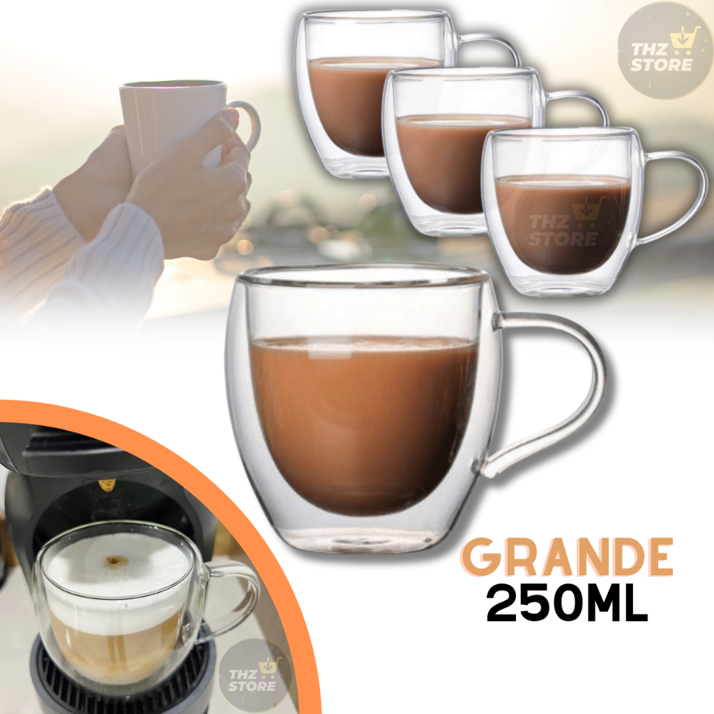 Xícara de Café Vidro Duplo Caneca Parede Dupla 250ml Chá Cappuccino Dolce Gusto Suco Água Chicara Fundo Duas Camadas Jogo de Xícaras Grande Cantinho do Café