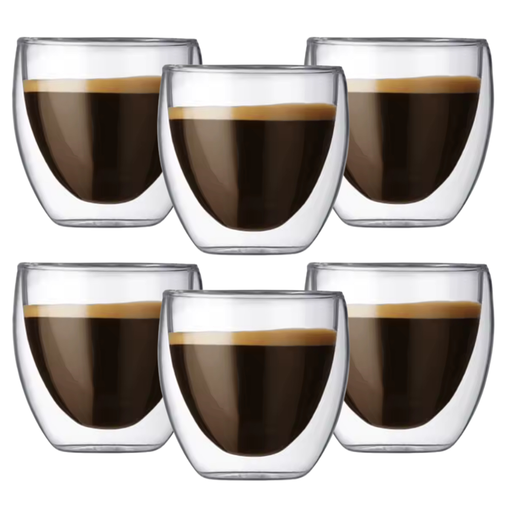 Jogo 6 Copos Vidro Boro Duplo Café Chá Expresso Chá Capuccino 100ml Parede Dupla Conjunto Kit