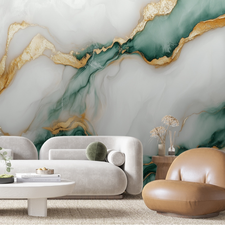 Papel De Parede Para Quarto Marmore Branco Dourado Verde Adesivo Lavavel Sala Cozinha Lavabo 3D
