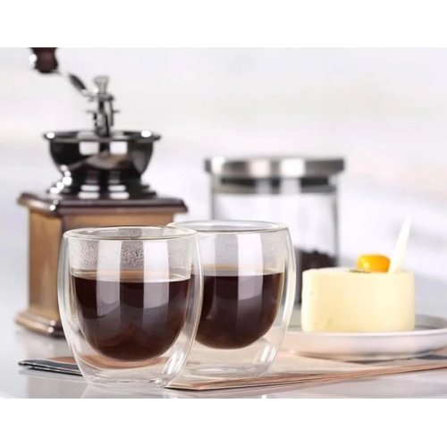 Conjunto Copos 2u Parede Dupla Borissilicato 80ml Com Alça