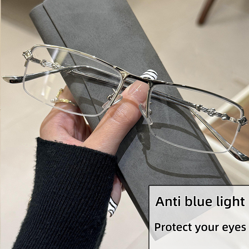 Lentes anti-radiação, estilo de moda de negócios, óculos de meia armação, óculos masculinos e femininos anti-luz azul.