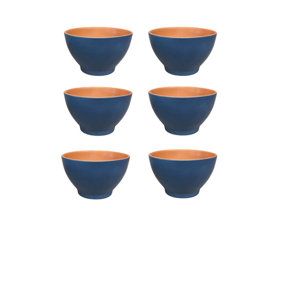 Bowl Tigela Azul com Terracota 500ml Cerâmica Rústica 4-6 Peças