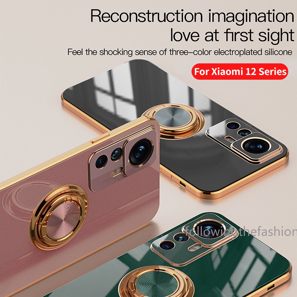 Para Xiaomi 12 5G 12X Lite 12T Pro Revestimento Da Caixa Do Telefone Com Suporte De Anel Proteção Lente Câmera 360 Rotação Moda Macia Anti-Impacto Capa Traseira