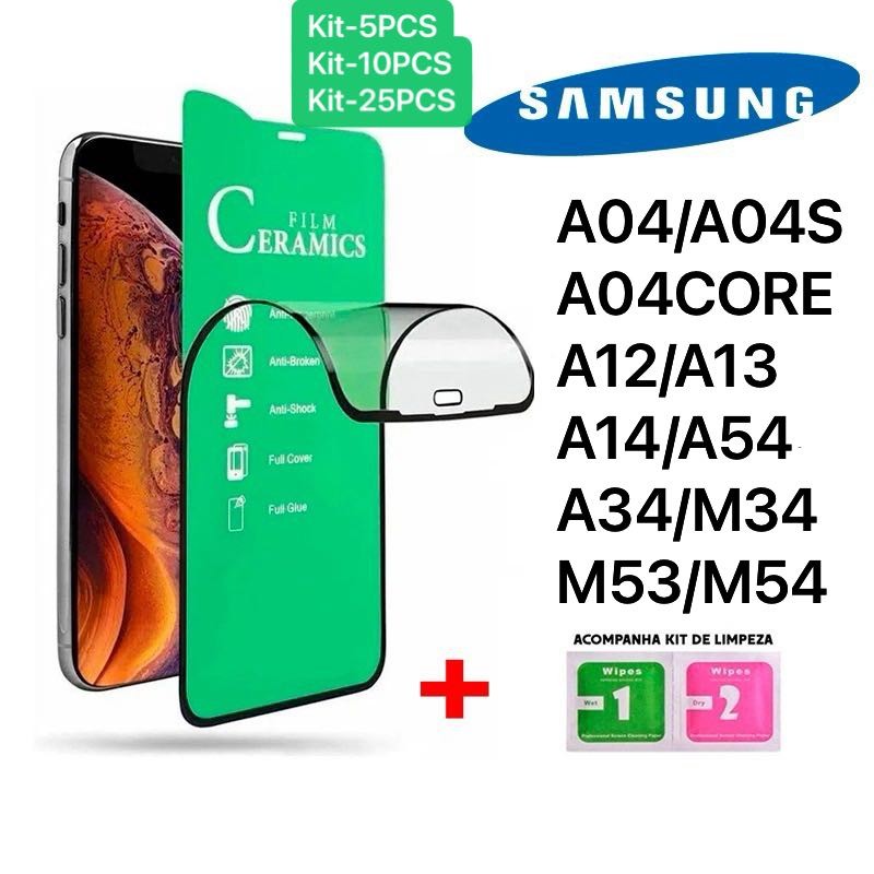 Kit com 5Pcs/10Pcs/25Pcs Pelicula Cerâmica 9D Para Samsung A12/A13/A14/A23/A34/A54/M14/M34/M35/M53/M54ng A04/A04S/