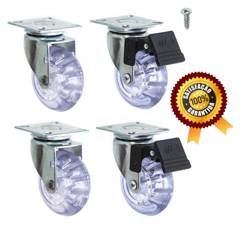 Kit 4 Rodinhas 50mm Silicone Gel 2 Com / 2 Sem Trava