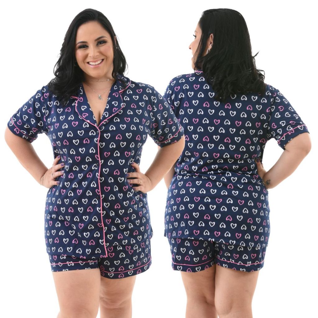 Pijama Plus Size Feminino Americano Curto De Botão Aberto Short Doll