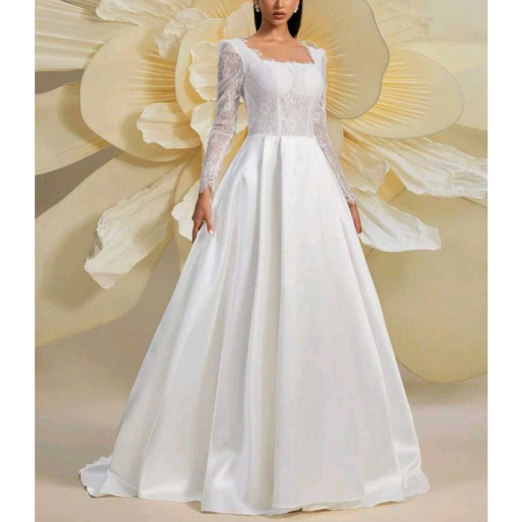 VESTIDO DE NOIVA COM MANGA LONGA E BUSTO EM RENDA