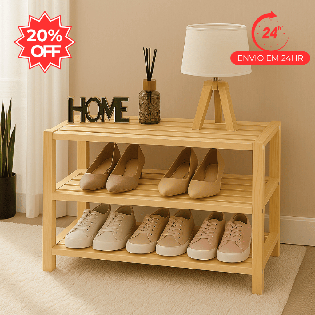 Sapateira Organizadora Madeira Rústica Minimalista 3 Prateleiras Estante Rack