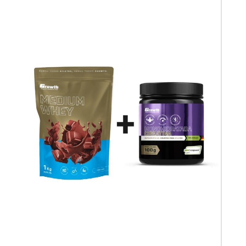 Kit 1 Medium Whey 1Kg + 1 Creatina Creapure 100g - Growth Supplements