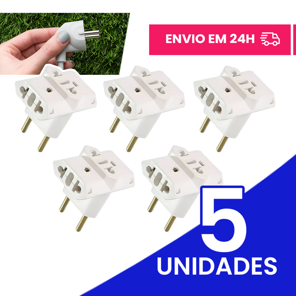 Adaptador de Tomada Kit C/5 Benjamin 10A/20A Pino Maciço Adaptador T Resistente