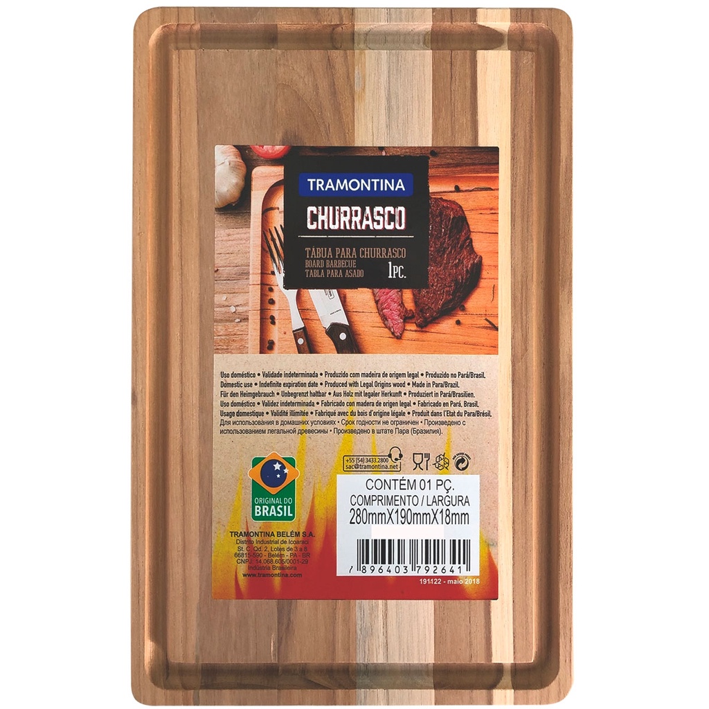 Tábua de Corte Tramontina Retangular em Madeira Natural para Churrasco 33x20cm