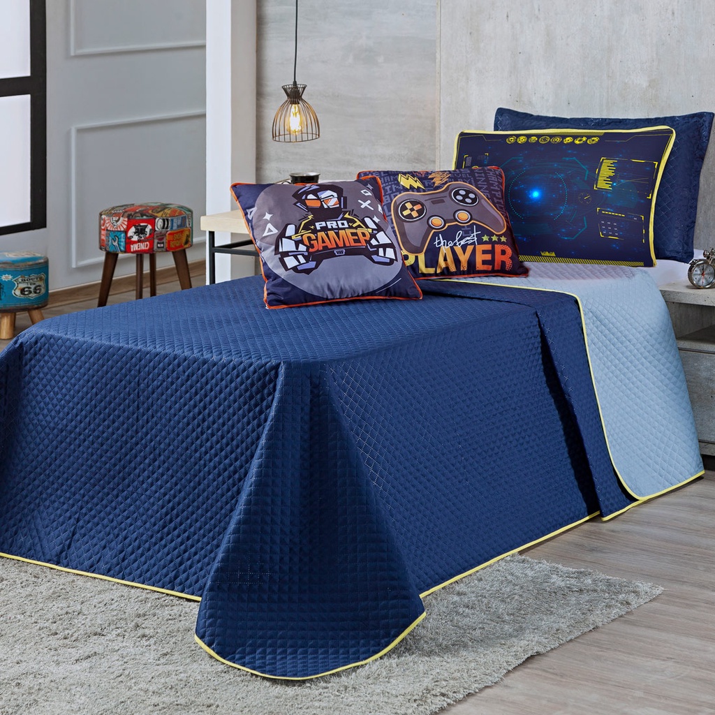Kit Cobre Leito Gamer Pro Dupla Face c/ Almofadas Solteiro 05 Pecas
