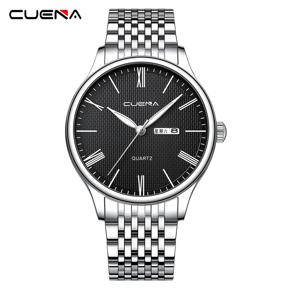 Relógio Original CUENA Homem Aço Inoxidável Vintage Dial Moda Simples Casual Empresarial Desportivo Quartzo À Prova D'água 6061