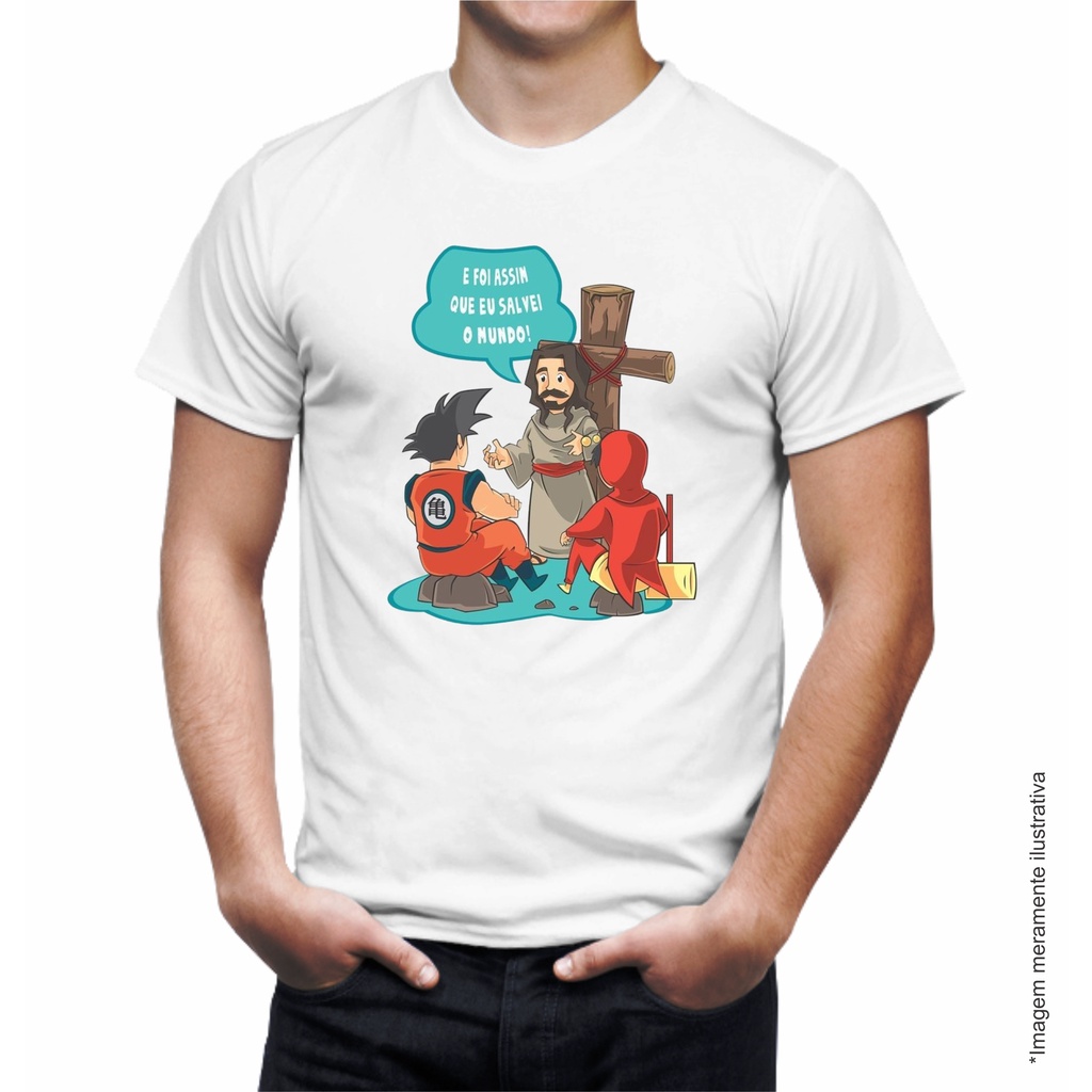 Camisa Camiseta E Foi Assim que Eu Salvei o Mundo Jesus Goku DragonBall Z Chapolin Colorado