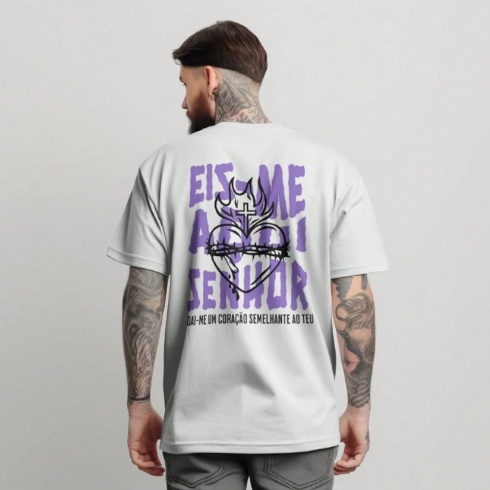 Camiseta Jesus Oversized Streetwear Masculina Feminina camisa 100% Algodão Eis-me aqui Senhor